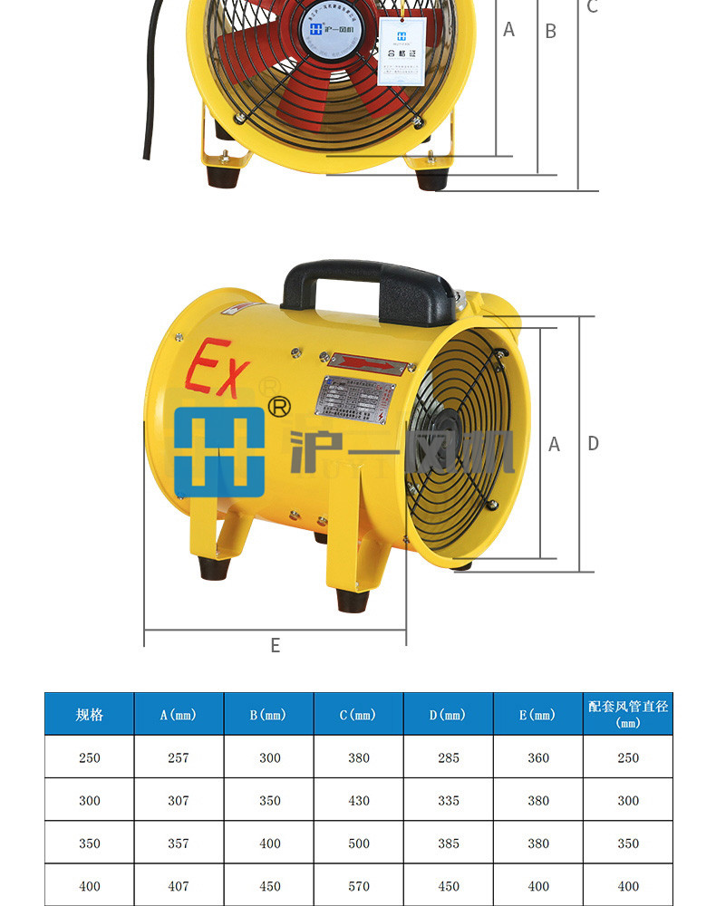 2.防爆电机采用高转速隔爆型纯铜线圈电机,整机设计结构合理具有重量轻、风量大、静压高、防爆性能可靠、便于携带和移动等特点;