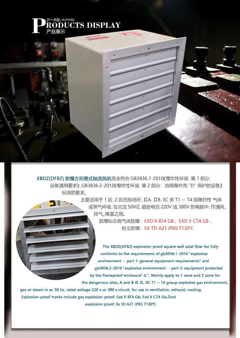 1. XBDZ系列轴流风机采用从声源入手,低转速,高压力系数的设计方法,研制成宽叶片,大弦长,空间扭曲倾斜式叶型,配用风机专用电机,具有明显的噪声低,轴流风机风量大,耗电省,振动小,外形美观等优点,是一种高效,节能型轴流风机。轴流风机广泛适用于厂房,仓库,办公室,住宅等场所的壁式排风,管道送风。